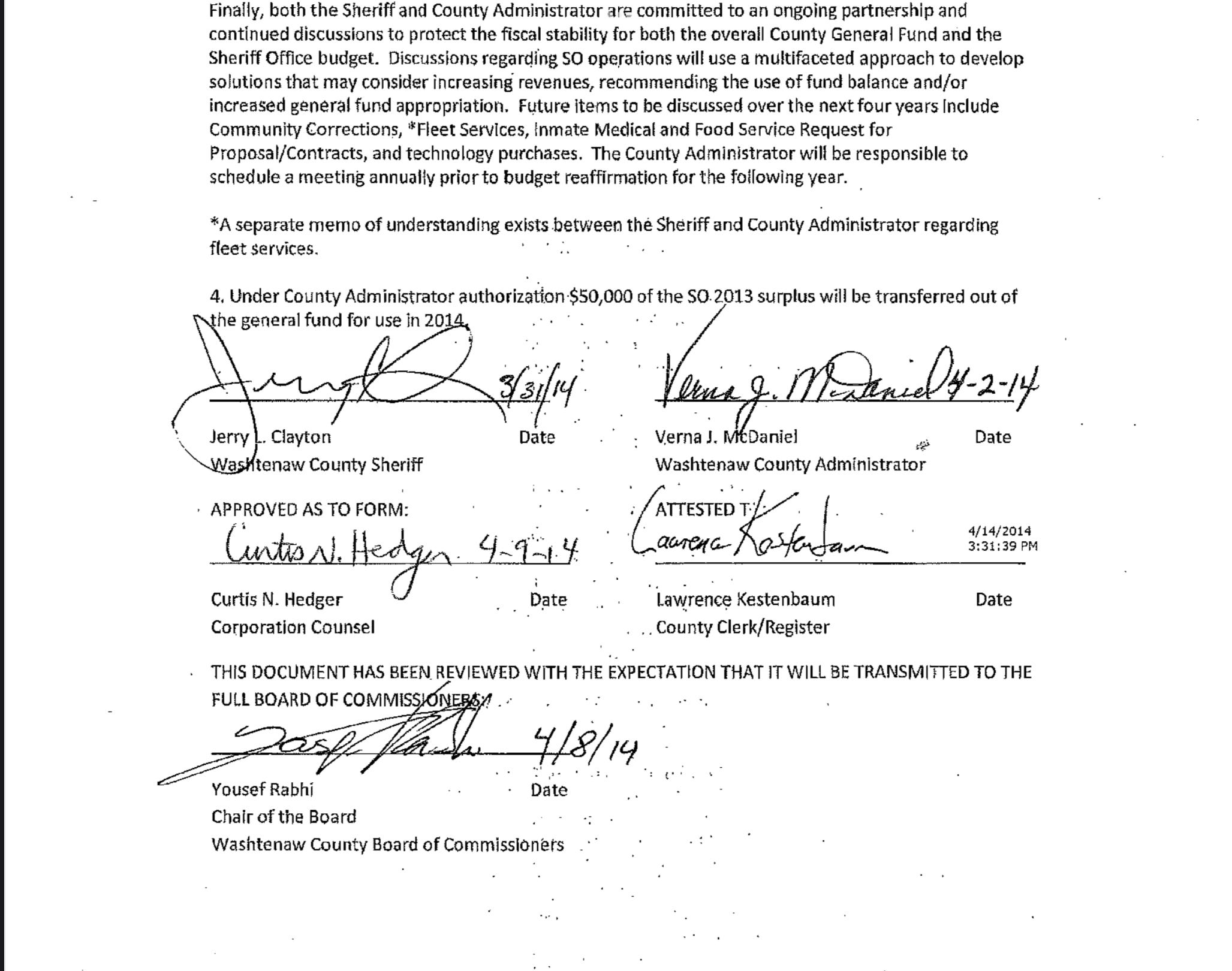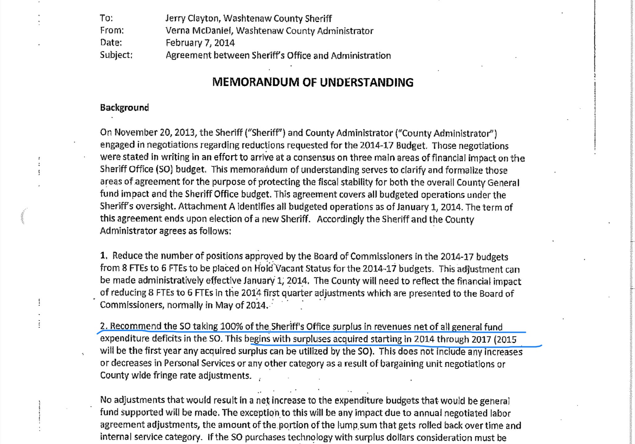 #eastannarbor friend and West Willow Community Advocate Alex Thomas [he is also involved in the ICPJ participatory budget project] has been drawing attention to aspects of our County Sheriff budgeting practices that are byzantine in nature and often overlooked by county staff and officials alike. One of these practices is outlined in an MOU now confirmed to actually exist by Thomas who FOIA’d the county for this information.