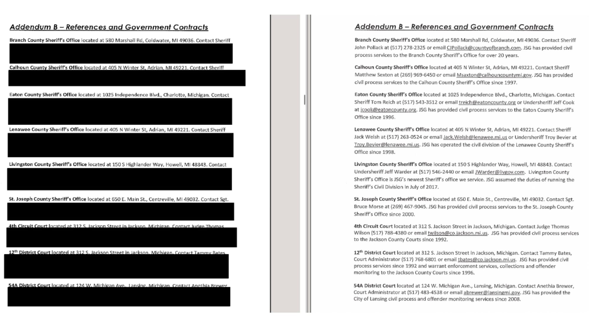 As far as the FOIA request for the entirety of the WCSO budget, I finally received the MOUs and contract documents this past Tuesday June 11 and have just started to go through the 330 documents ranging from 1-250 pages per document. I will soon post these documents to the https://a2docs.org/ site. One interesting nugget found thus far are two copies of a contractor info document, one of which is nearly completely redacted with the other completely un-redacted.
