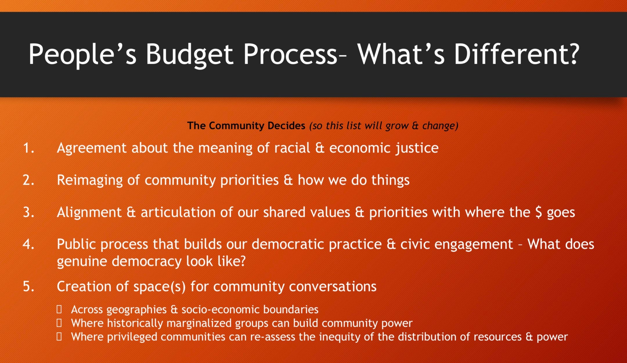 A group facilitated by ICPJ is working to bring community members from marginalized populations together to learn about and advocate for county budget measures that address disparities by race, income, zip code etc. Full disclosure, yours truly is working with ICPJ staff and other local organizers on this project.