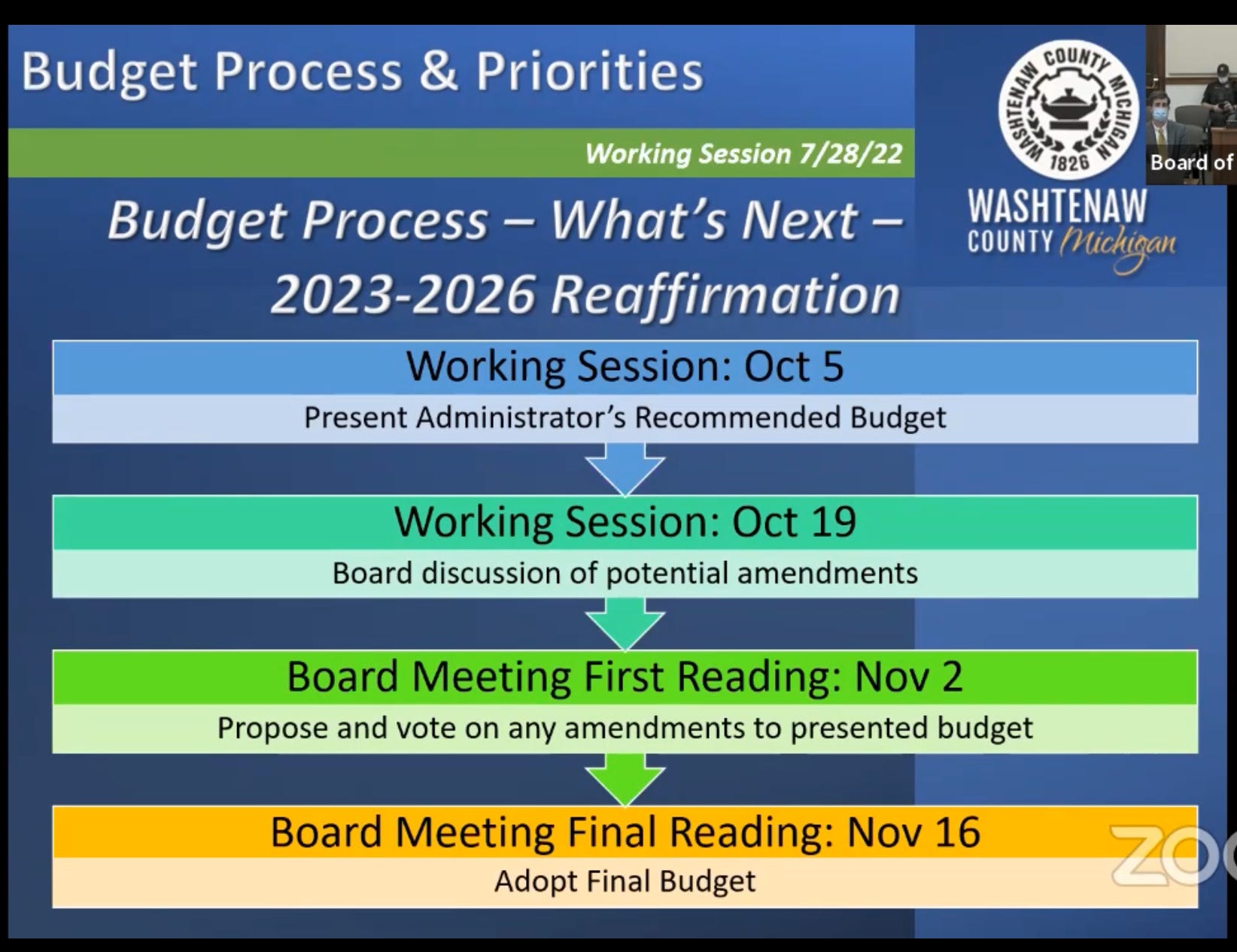 WASHTENAW COUNTY BUDGET PROCESS - UPDATE FROM WORKING SESSION ON 8/3