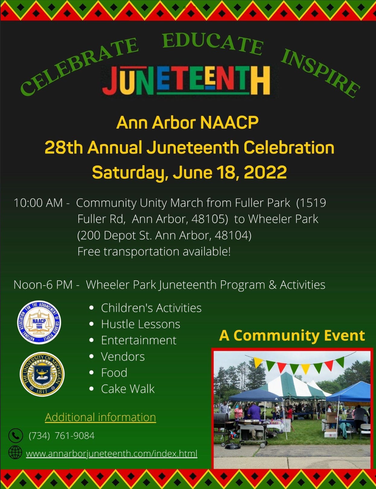 2. More info about the Ann Arbor NAACP Juneteenth Celebration can be found here.