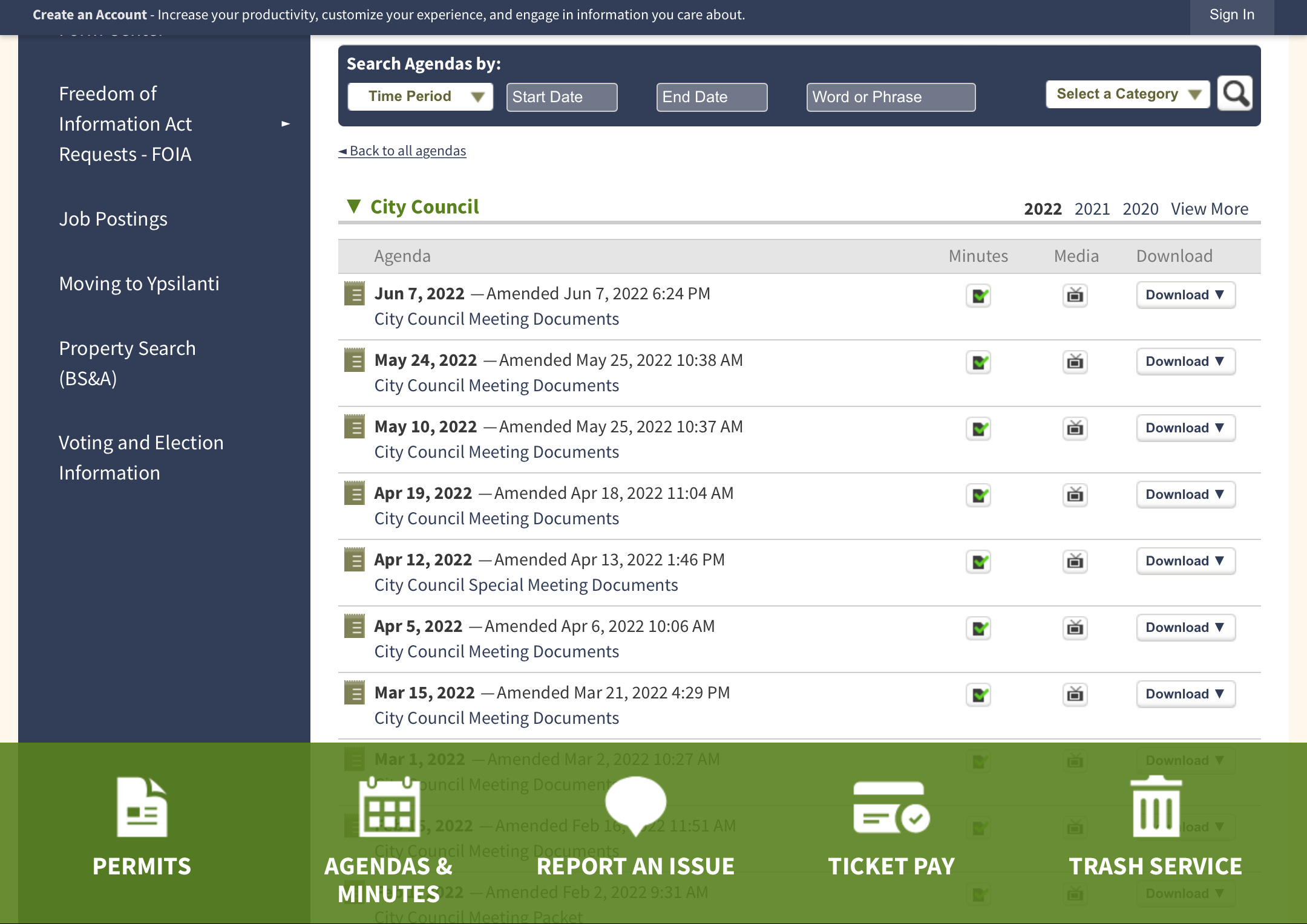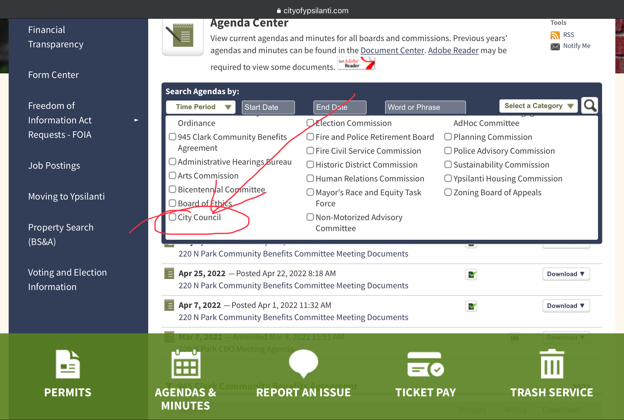 Upcoming meeting agendas should also appear here. The next Ypsi City Council meeting is on June 21. However the agenda is not posted to this page yet. We did a cursory search around the city site but could not locate an agenda for the 21st. If you know where the agendas for upcoming Ypsi City Council meetings…