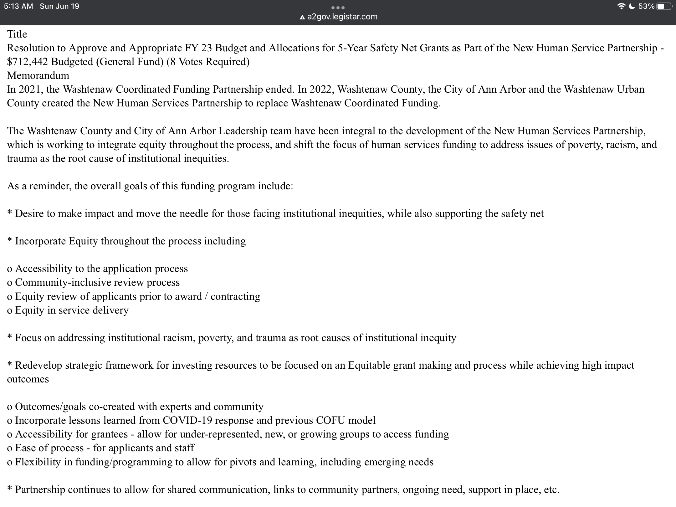 Another item we found on the #A2Council agenda for Tuesday June 21, 2022 is CA-5 which looks to be the remaining dollars for the NHSP that was only partially funded at the previous Washtenaw County Board of Commissioners [BOC] meeting.
