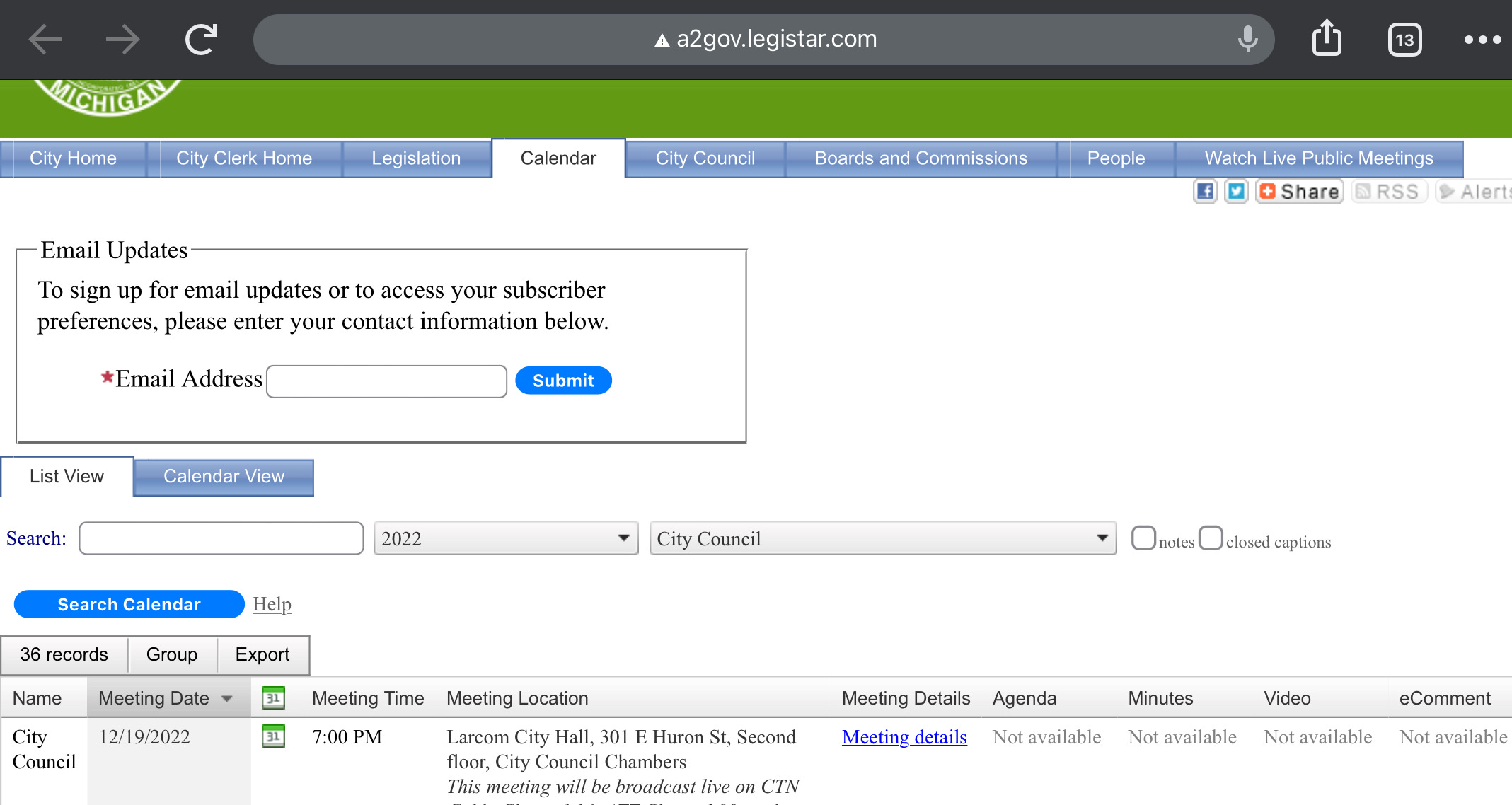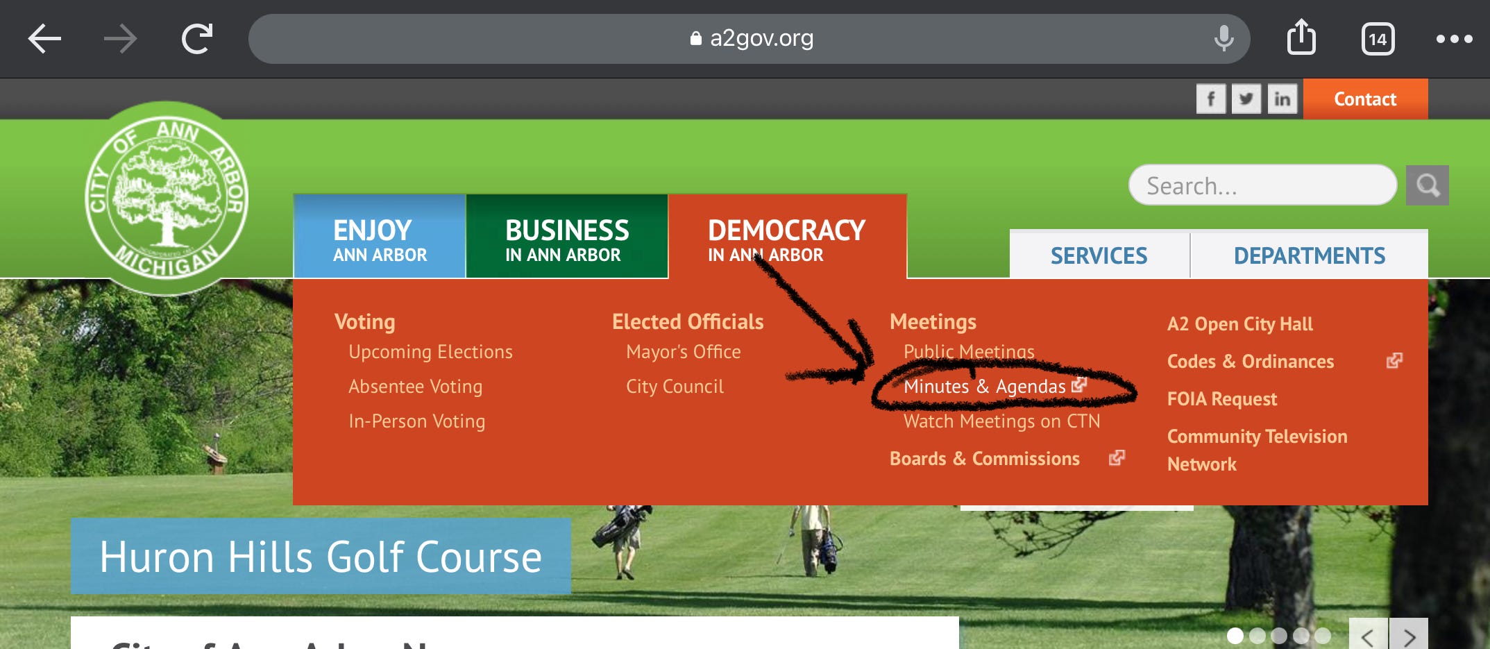 In order to get to info other than past videos and 400-page pdf packets, you will have to s p e n d t i m e…. We can draw a bit of contrast between access to legislative info on the county webpage vs. the A2 city webpage.