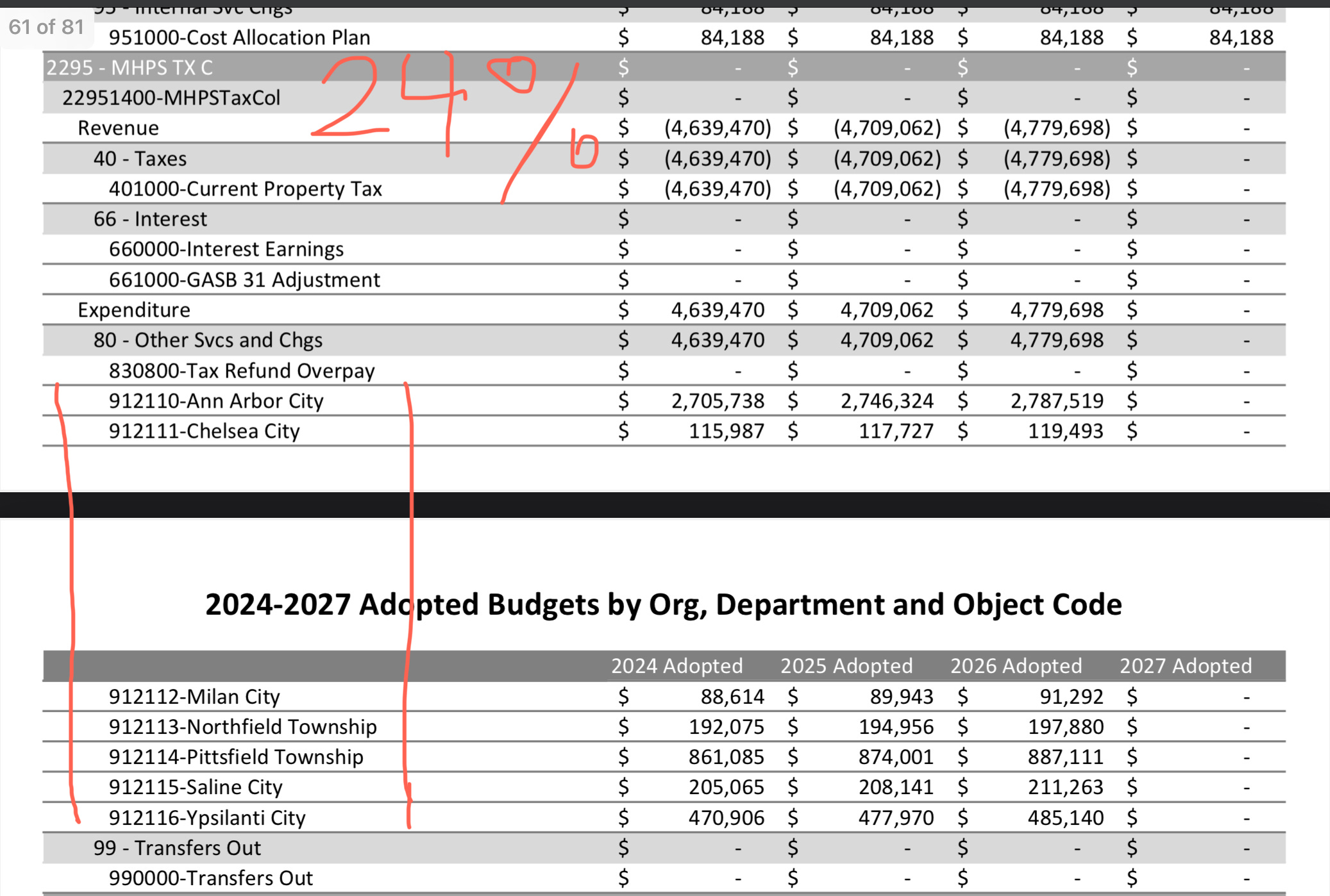 Here’s the 24% of the MH/PS millage broken down by how much each municipality with its own police force receives. This is yet another reason we need to separate these millages. We should not be handing over county taxpayer dollars, unrestricted funds mind you, to municipalities that do not need the extra funding, especially Ann Arbor.