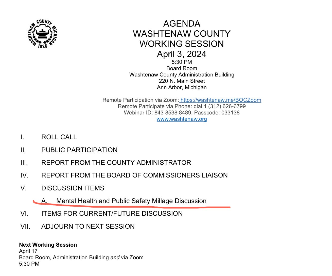 During The Working Session Beginning at 530pm, Zoom / 220 N. Main in Ann Arbor